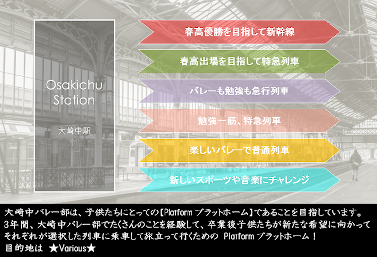 大崎中では卒業後の進路は、部員及び保護者の希望により自由に選択しています。高校でもバレーボールを続ける子供もいれば、高校では勉強に専念する子供もいます。大崎中での3年間の経験を生かして、進学先はバラエティーに富んでいます。大崎中発、日本全国、そして世界へ!